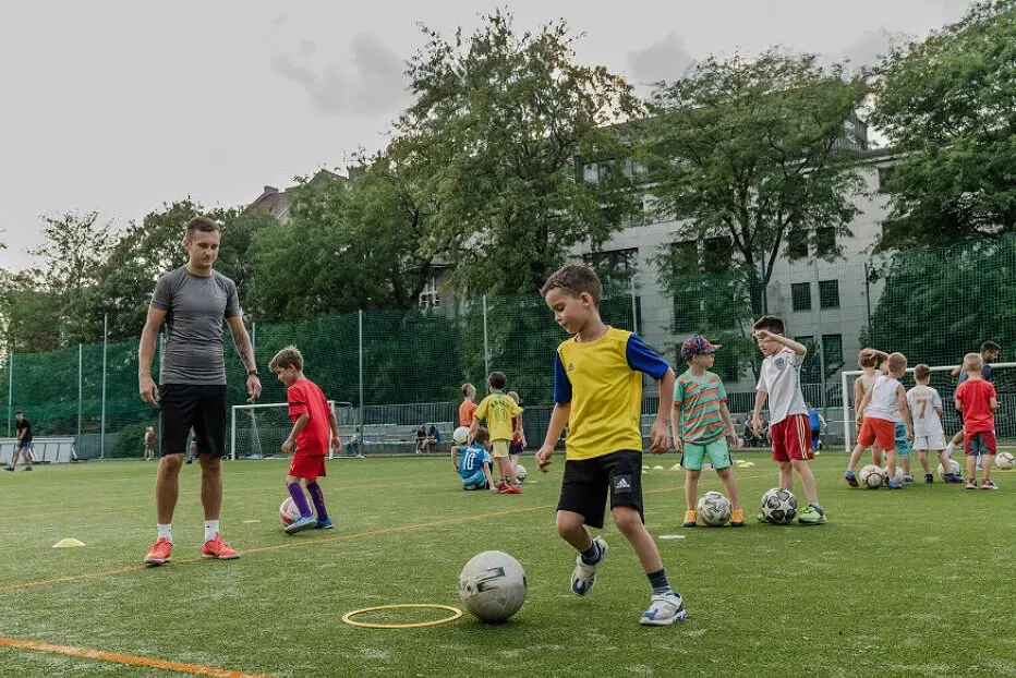 Mykyta på 6 år er, sammen med sin familie, flygtet fra Kyiv til Polen på grund af krigen. For at hjælpe børn som Mykyta i de nye omgivelser sørger UNICEF blandt andet for fodboldtræning på Interschool Sports Center i Krakow. Oleksandr (i grå t-shirt) hjælper med at træne de mange børn – han er ikke i tvivl om, at fodboldtræningen er med til at hjælpe børnene i en svær tid. ”Fodbold er et holdspil, derfor hjælper børnene hinanden og det giver mulighed for at lære andre at kende og få nye venner., fortæller Oleksandr.